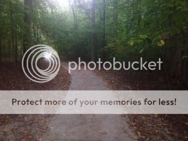 1st this is from my bike ride Thursday night - this woods is adjacent to the woods I posted a picture of last week - it's an awesome place to walk & an ok place to ride (narrow) You can see there are a lot of leaves on the ground, but most on the tree's are still green!: